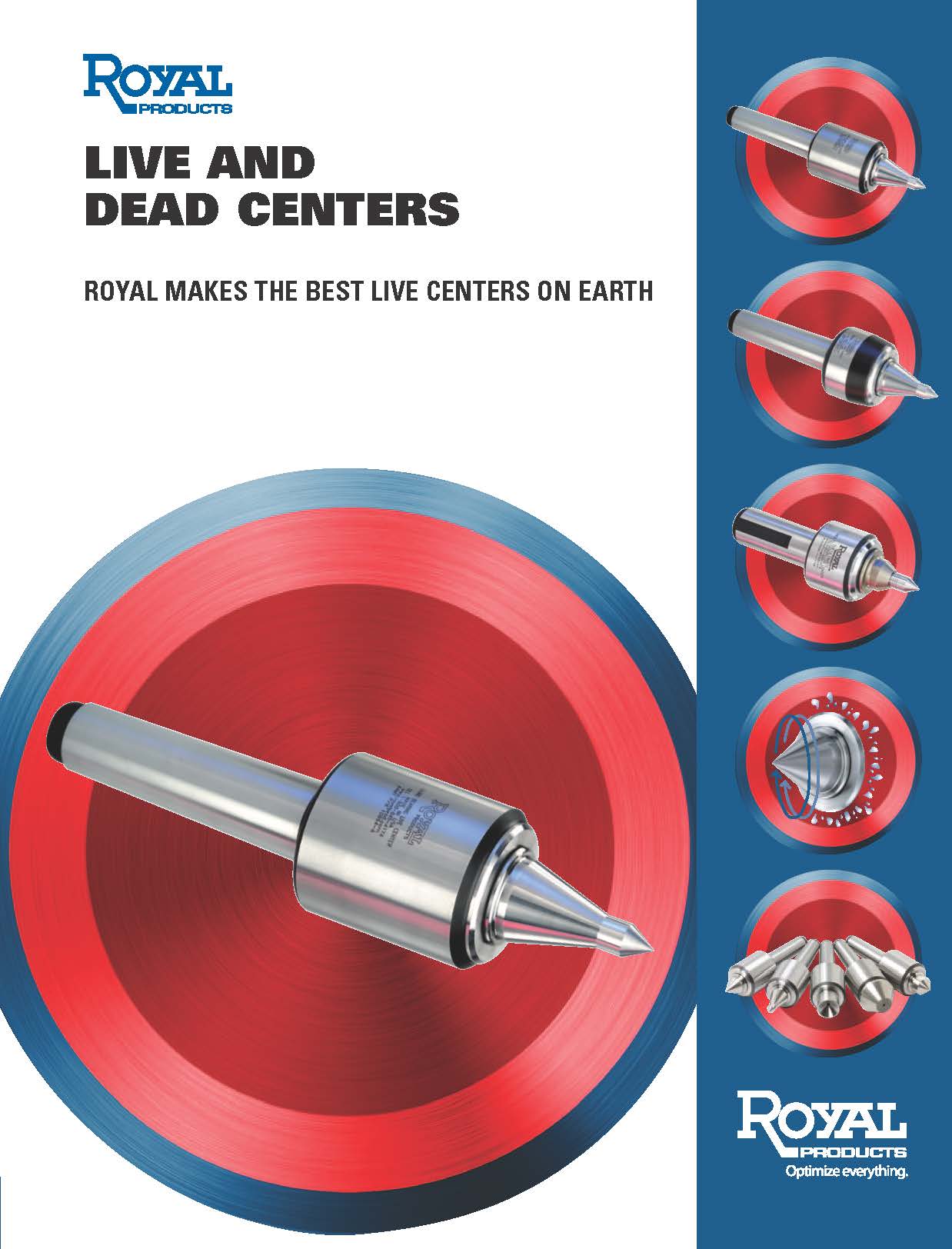 This catalog contains every live and dead center we offer including customs, quad-bearing, heavy-duty spindle type, high-speed, multi-tasking, spring type, versa-turn, big-bore bull head, and changeable point. Every Royal Live Center is proudly made in the USA.