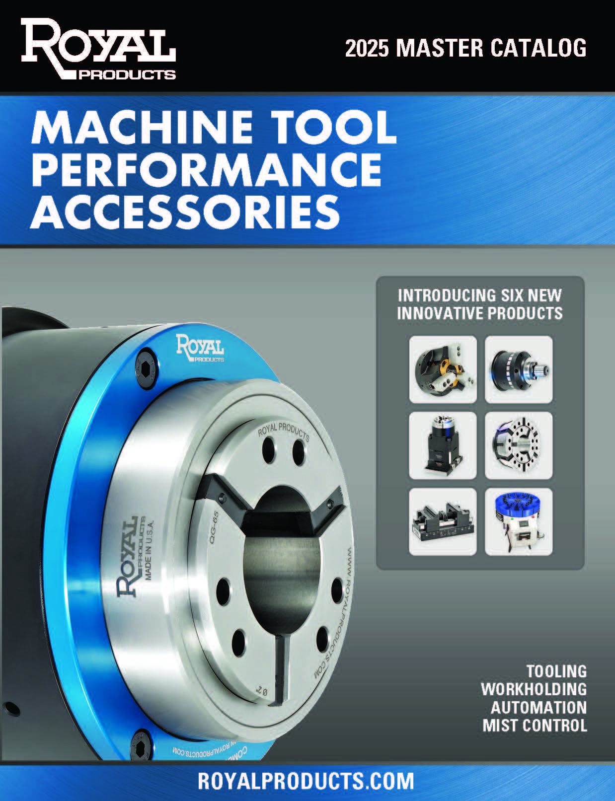 This catalog contains every items that we offer from Royal Products including the just released Multi-Tasking Chuck, QG-65 Combo Chuck, SLV - Sturdy Little Vise, Power-Block QG-32 Fixture, QG-100 / QG-65 Adapter and Rota-Rack Compact.