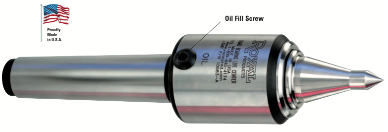 - Lubricated with lightweight spindle oil instead of grease for reduced turning resistance and lower operating temperatures. A true high-speed live center capable of running at 12,000 rpm all day long!