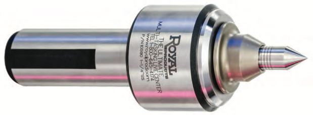 The Royal Ultimate™ Multi-Tasking Live Center is proudly manufactured in the United States and designed specifically for the latest multi-tasking CNC machines with lower turrets and/or sub-spindles. It features a spring-loaded point that can compensate for the lack of hydraulic compensation found on tailstocks, providing protection for lower turrets and sub-spindles against overloading and potential crashes. Its durable design, including the exclusive Royal Roto-Shield™ and a long-lasting spring-loaded neoprene seal, ensures a longer operating life compared to other spring-type live centers. With a heavy-duty bearing configuration and optimized spring-pak, the Royal Ultimate™ Multi-Tasking Live Center is the ideal choice for all multi-tasking machines.
